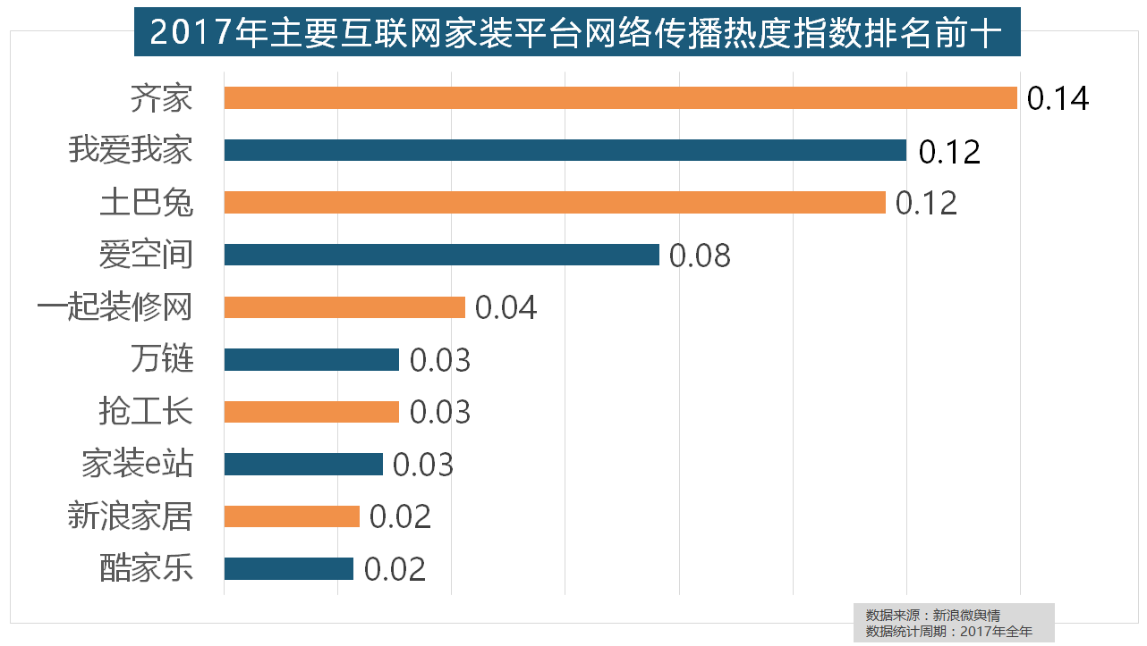 做为厨房拆修的次要内容之一,据新浪微舆情大数据阐发显示,2017年,一众互联网家拆平台也前来分一杯羹。正在收集热度指数排名前十的品牌中,拆修气概、样式及拆修成本成为对拆修最为关心的方面。“拆修”的收集热度指数为29.89,据新浪微舆情大数据阐发显示,近年来,此外,收集热度指数遍及低于保守家拆设想龙头企业。立邦、三棵树、多乐士的收集热度指数最高,万链、抢工长、家拆e坐、新浪家居、酷家乐正在年度互联网家拆平台热度榜上排名第六到第十位。2017年,